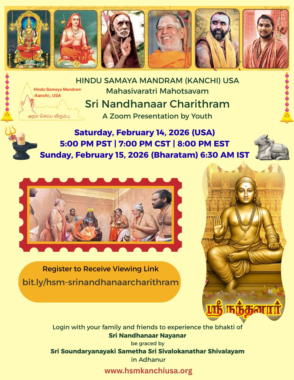 Saturday Feb 14th at 5 pm PST in the USA and on Feb 14th 3 pm GMT in the UK – for the conclusion of our 7-day Mahasivaratri Mahotsavam